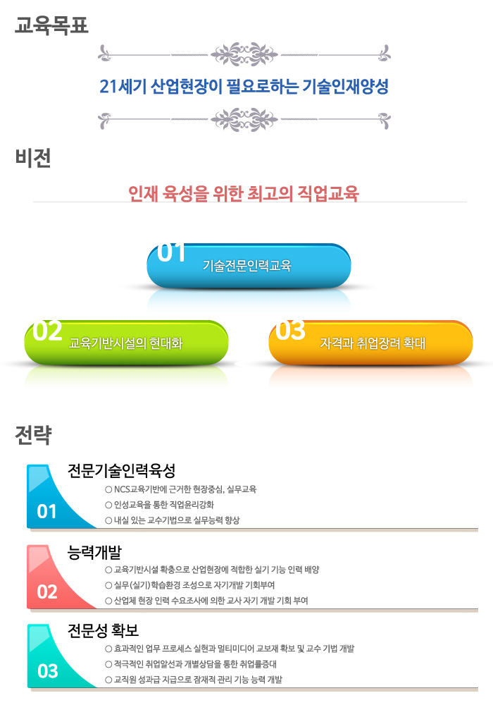 서울에서 가까운 용인시에 아늑한 자연환경으로 조성되어 있는 중앙직업전문학교는 공생·공영의 지침 아래 20년 동안의 다양한 교육 경험을 통해서 모두가 더불어 사는 철학을 가지고 운영하고 있습니다.